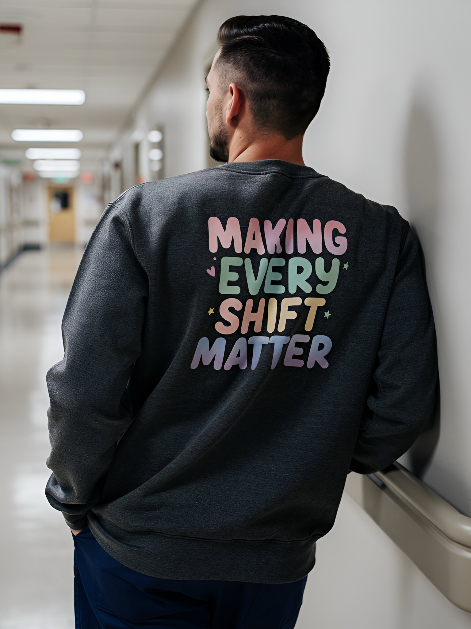 - Pastel “Making Every Shift Matter” design on the back
